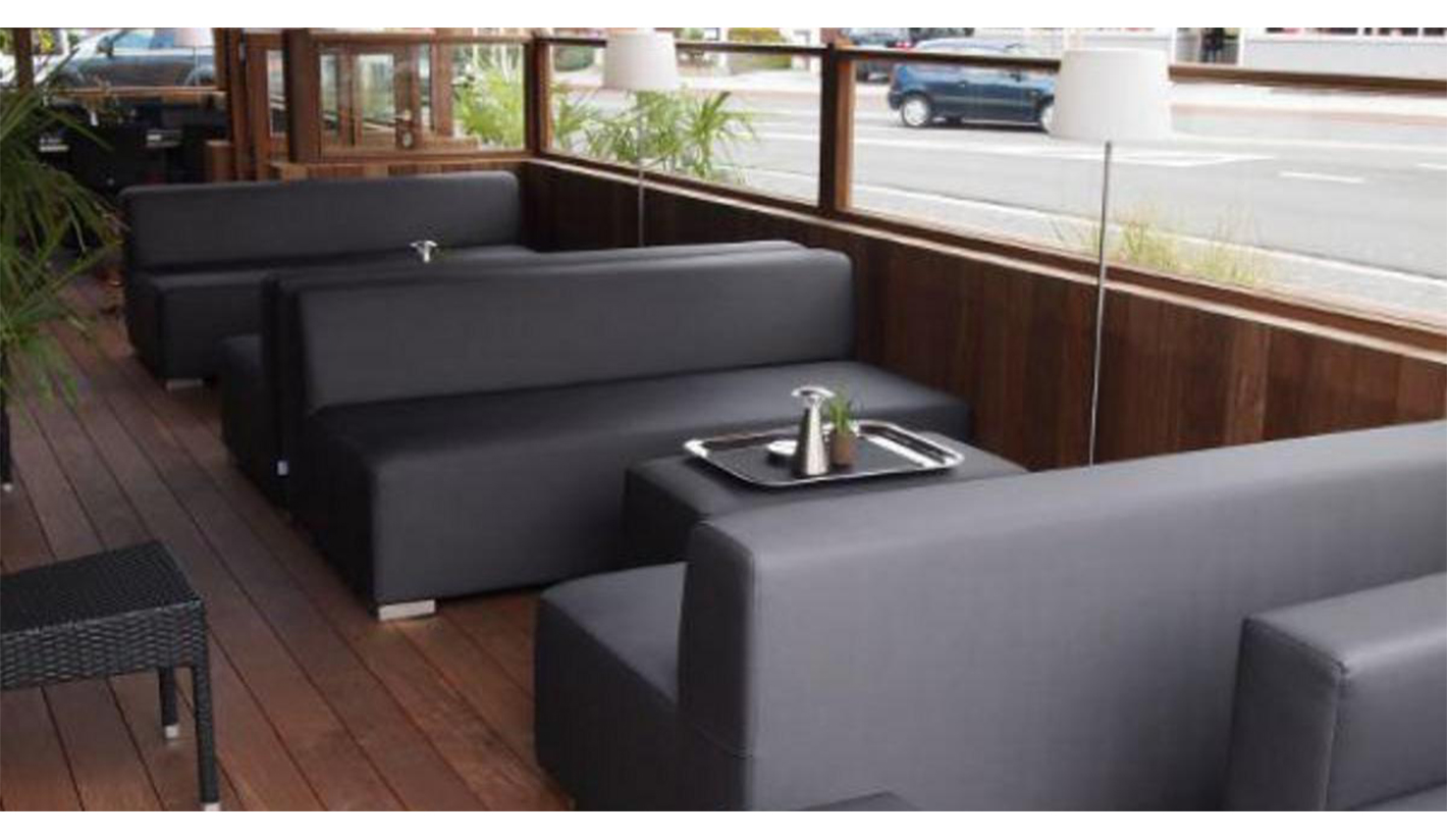 Esta colección de sofás de exterior son ideales para usarse en hostelería, hoteles y zonas chillout, con posiblidad de hacerlos completamente a las medidas especificadas por el cliente.