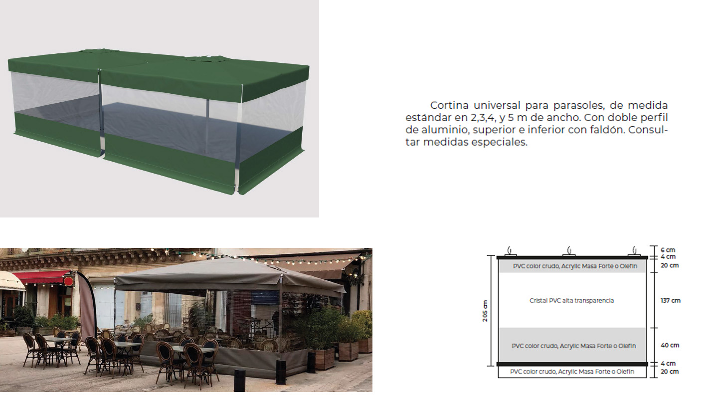 cortina para hacer el cerramiento de parasol en tejido OLEFIN.