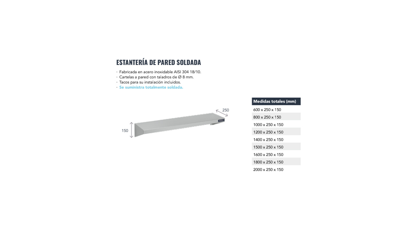 Fabricada completamente en acero inoxidable con cartelas a pared.