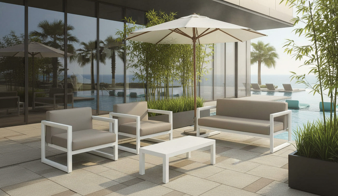 El set corresponde a dos sillones individuales, un sofá doble y una mesita.