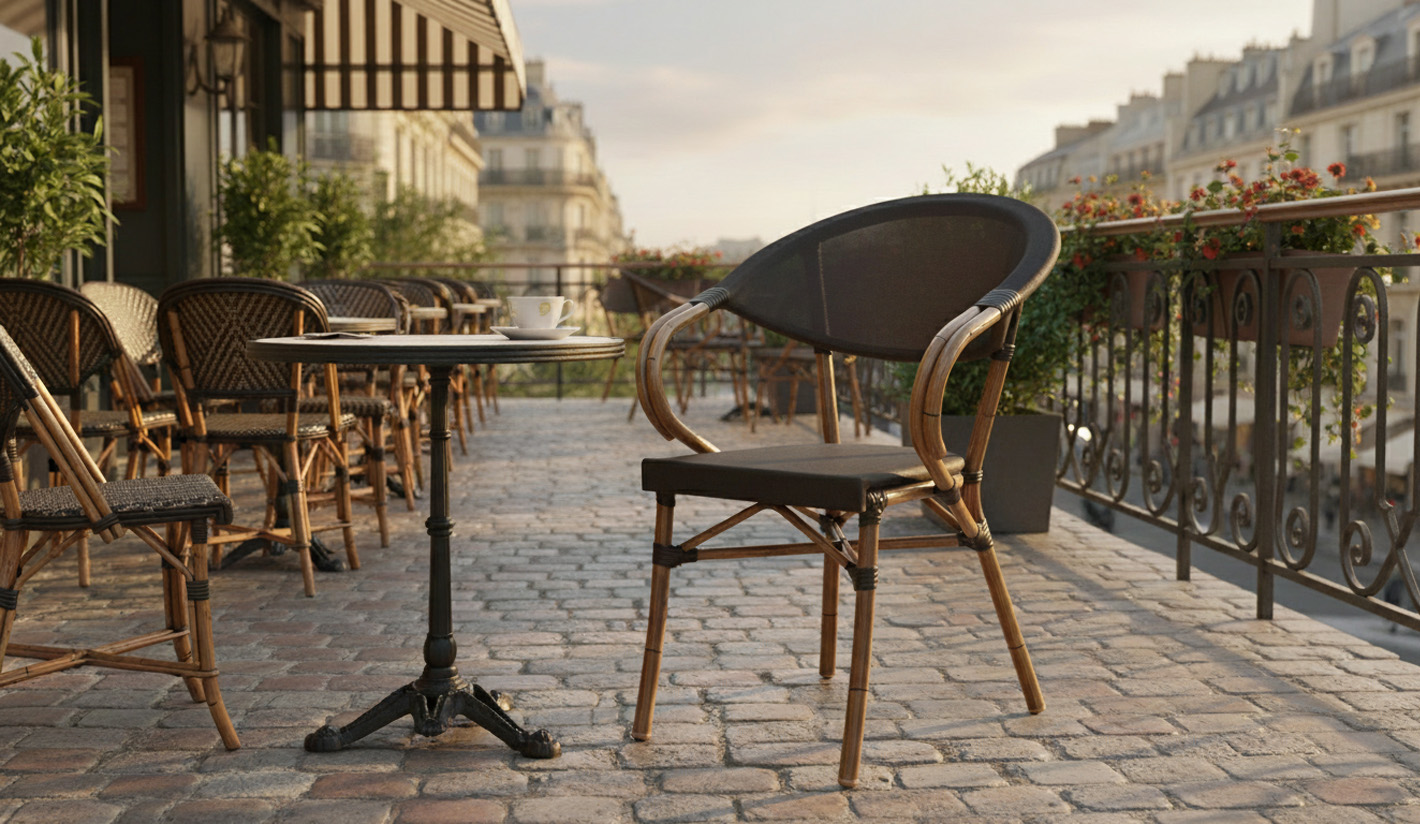 Esta silla de exterior para hostelería está diseñada para ofrecer confort, durabilidad y una imagen cuidada en restaurantes, cafeterías, hoteles y terrazas profesionales. Su diseño de inspiración bistró aporta un estilo atemporal que encaja perfectamente en espacios de restauración tanto clásicos como contemporáneos.