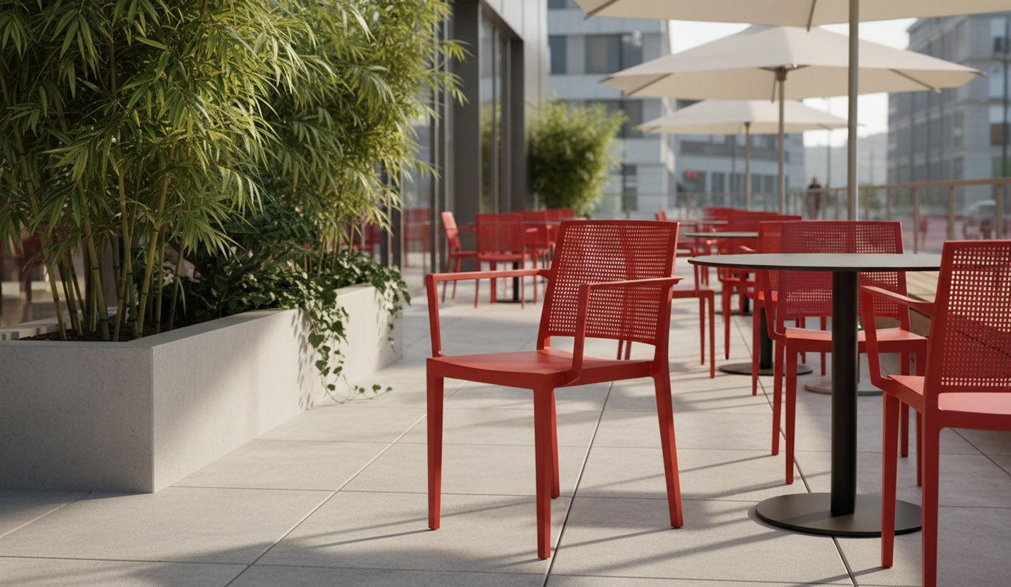 Silla con brazos para hostelería y restauración fabricada en polipropileno de alta resistencia, diseñada específicamente para un uso profesional intensivo en bares, restaurantes, cafeterías y terrazas. Su estructura monobloque con brazos integrados ofrece mayor estabilidad, refuerzo estructural y un plus de confort, ideal para clientes que permanecen sentados durante largos periodos.