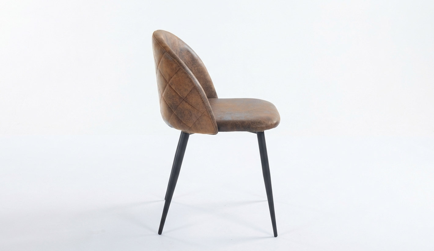 Su diseño combina líneas suaves y envolventes con un respaldo curvado que favorece una postura cómoda. El tapizado está disponible en polipiel o tejido técnico, materiales resistentes al uso intensivo y de fácil limpieza, ideales para entornos profesionales donde la durabilidad y el mantenimiento son clave. El acabado en polipiel aporta una estética sofisticada, con un efecto ligeramente vintage en el modelo marrón y una imagen más moderna en negro.