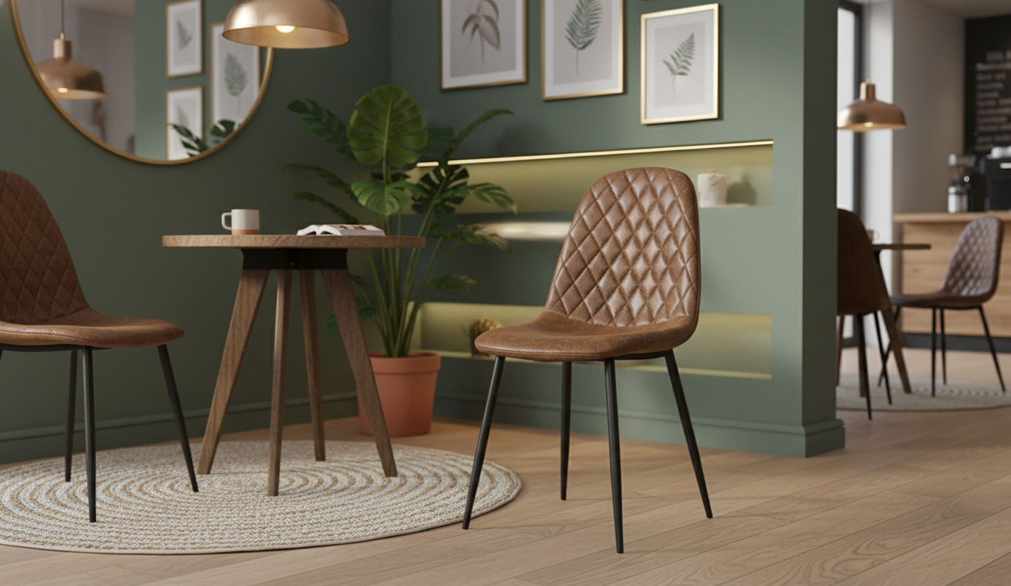 Patas metálica de una sola pieza soldada con tapizado piel sintética imitación cuero: Lo mejor de la parte sintética que es la durabilidad, resistencia y facilidad de limpieza, combinada con lo mejor de la estética del cuero.