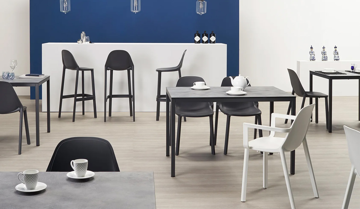 Una silla pensada para proyectos contract que necesitan mobiliario resistente, versátil y con presencia moderna, capaz de elevar la experiencia del cliente y la eficiencia del espacio.
