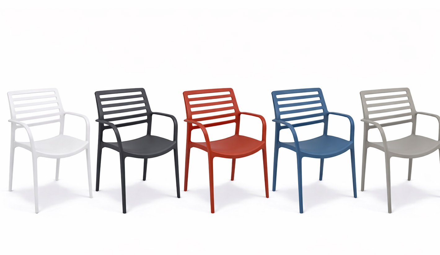 Gracias a su material técnico, esta silla es apta para interior y exterior, resistente a la humedad, a los rayos UV y de fácil limpieza, lo que la convierte en una solución ideal para terrazas, comedores y zonas de alto tránsito. Su diseño actual y funcional encaja perfectamente en entornos modernos y profesionales.