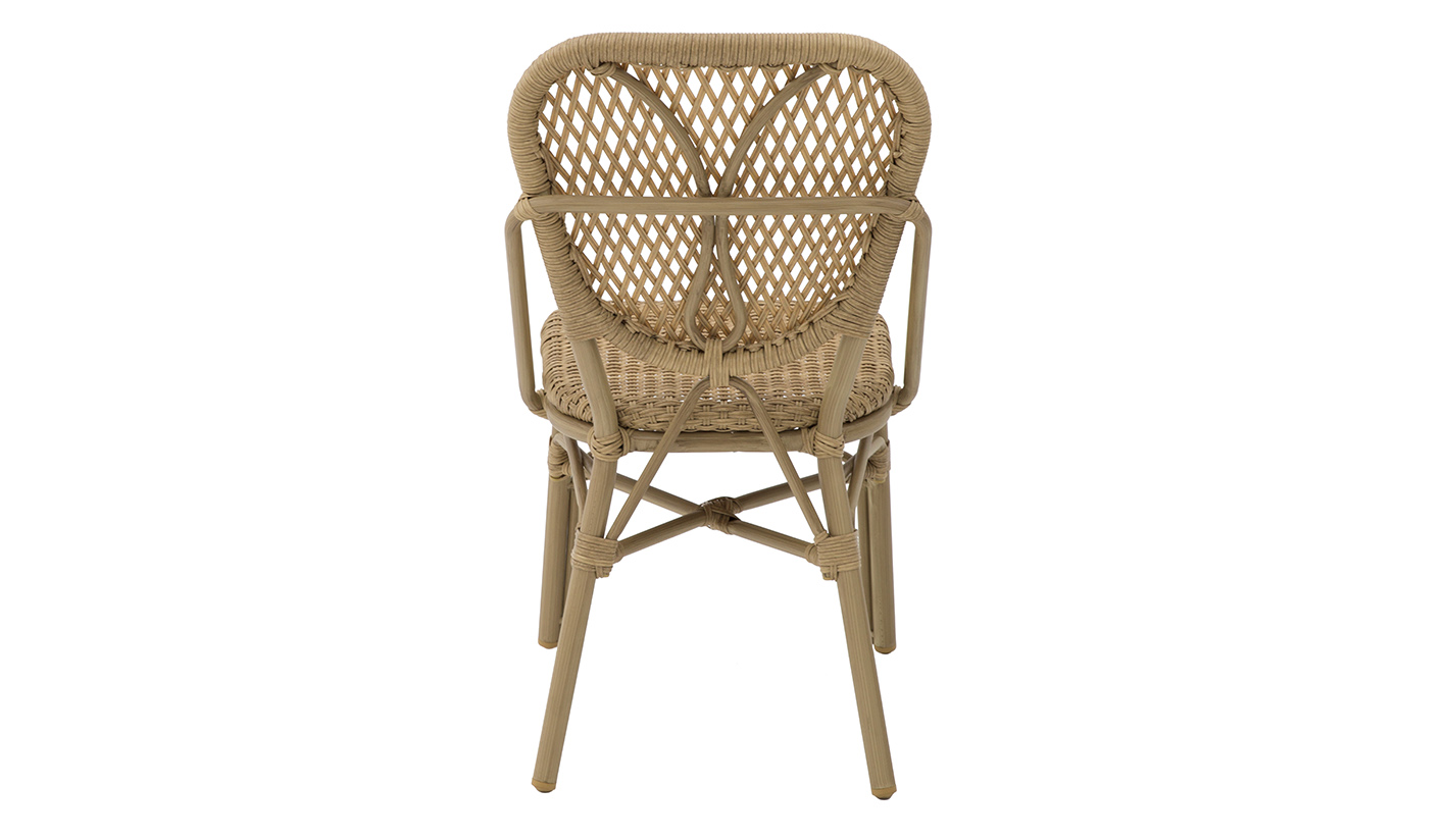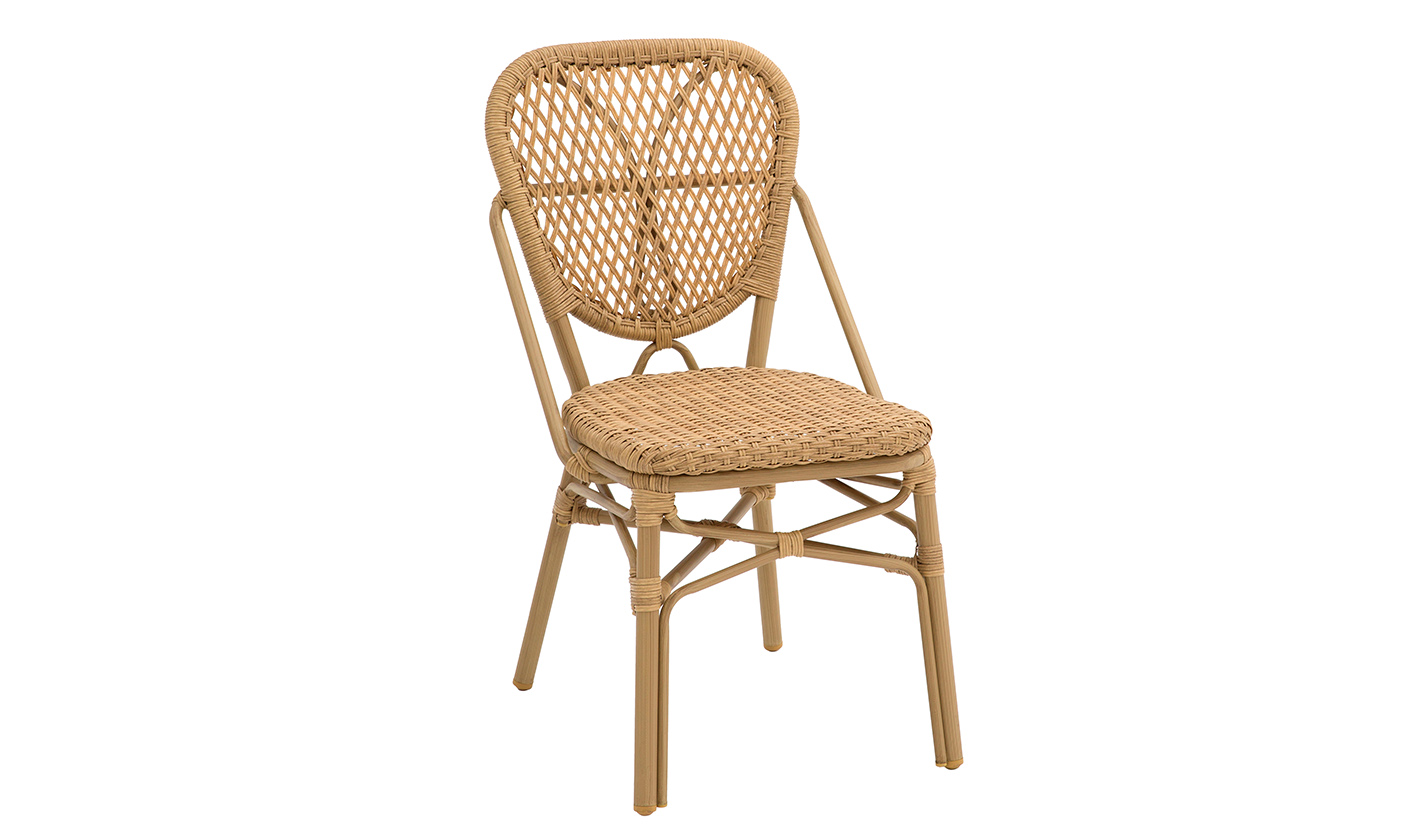 Silla sin brazos con estructura de aluminio y rattán en asiento y respaldo color NATURAL