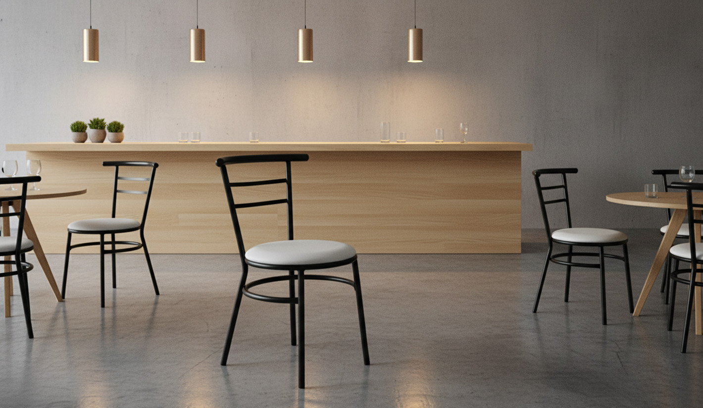 Estructura con tubo acerado con asiento tapizado a alegir según especificaciones del cliente