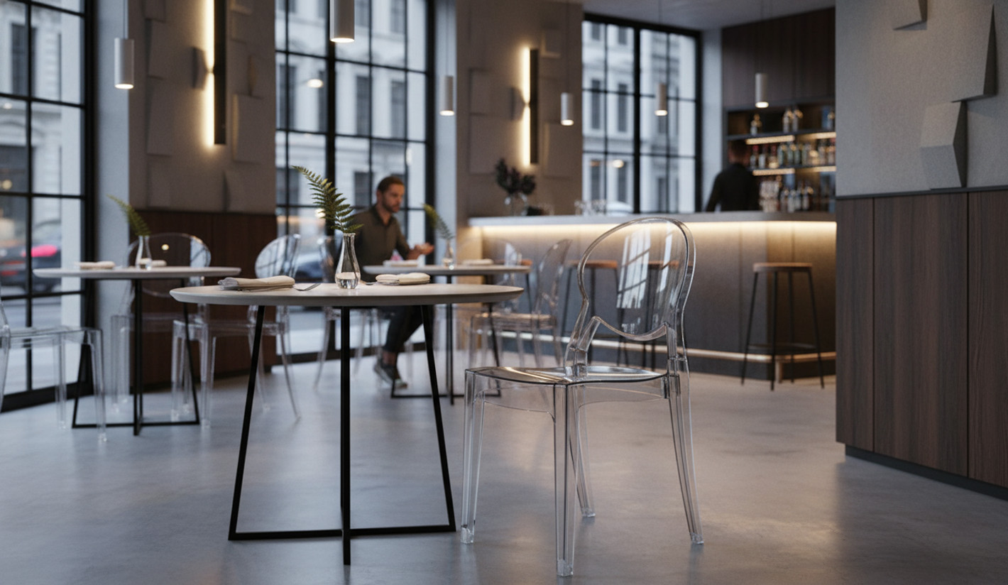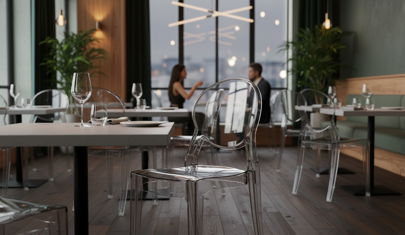 La silla sin brazos de policarbonato es una solución moderna, resistente y elegante diseñada especialmente para espacios de hostelería, restauración y hoteles que buscan mobiliario profesional con estilo contemporáneo y una gran durabilidad. Fabricada en policarbonato de alta calidad, este modelo ofrece una excelente resistencia al impacto, estabilidad estructural y un acabado visual que combina claridad, brillo y ligereza estética.