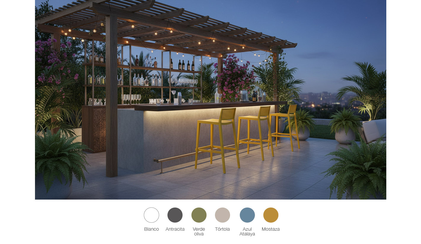 Disponible en varios colores, se adapta a diferentes estilos decorativos y proyectos contract, aportando funcionalidad, durabilidad y diseño contemporáneo.